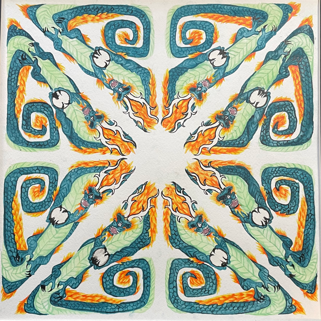 Dragon kaleidoscope, watercolor, May ’23